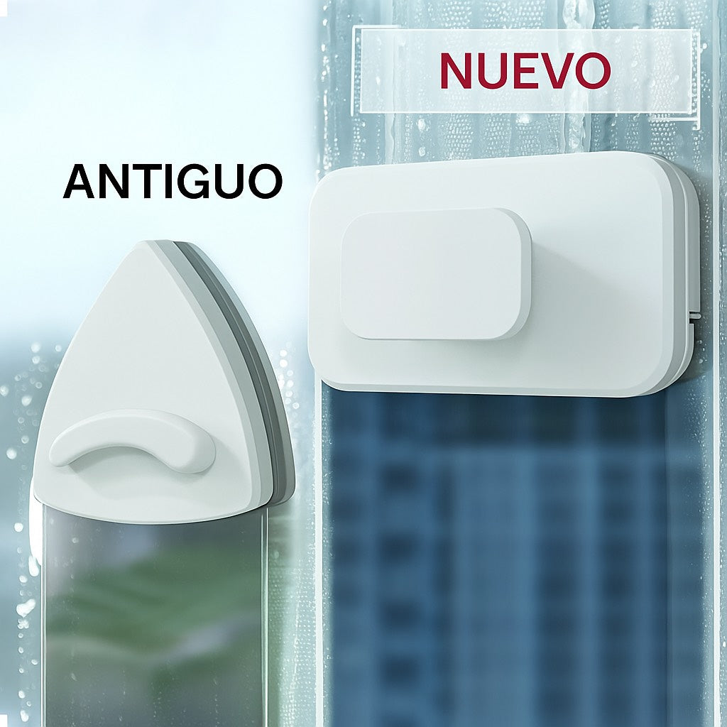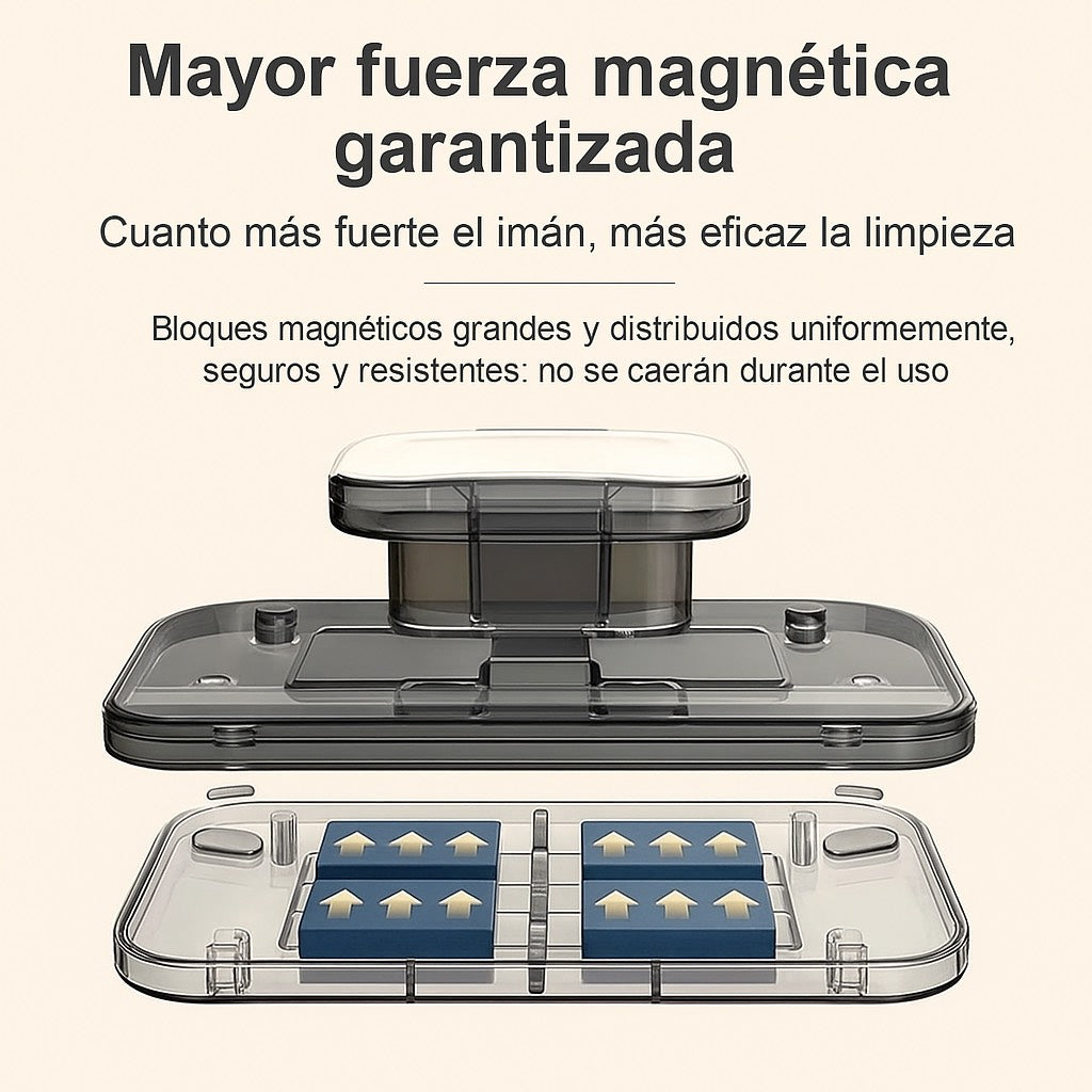 🔹 Imán súper potente que mantiene unidas las dos partes, limpiando ambos lados del vidrio al mismo tiempo.